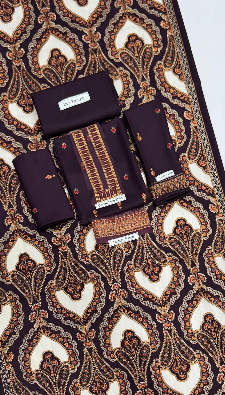 Bareeze 1672 Unstitched Luxury Dhanak Heavy Embroidered 3PC Suit With Laser Cut Shawl ( Purple )